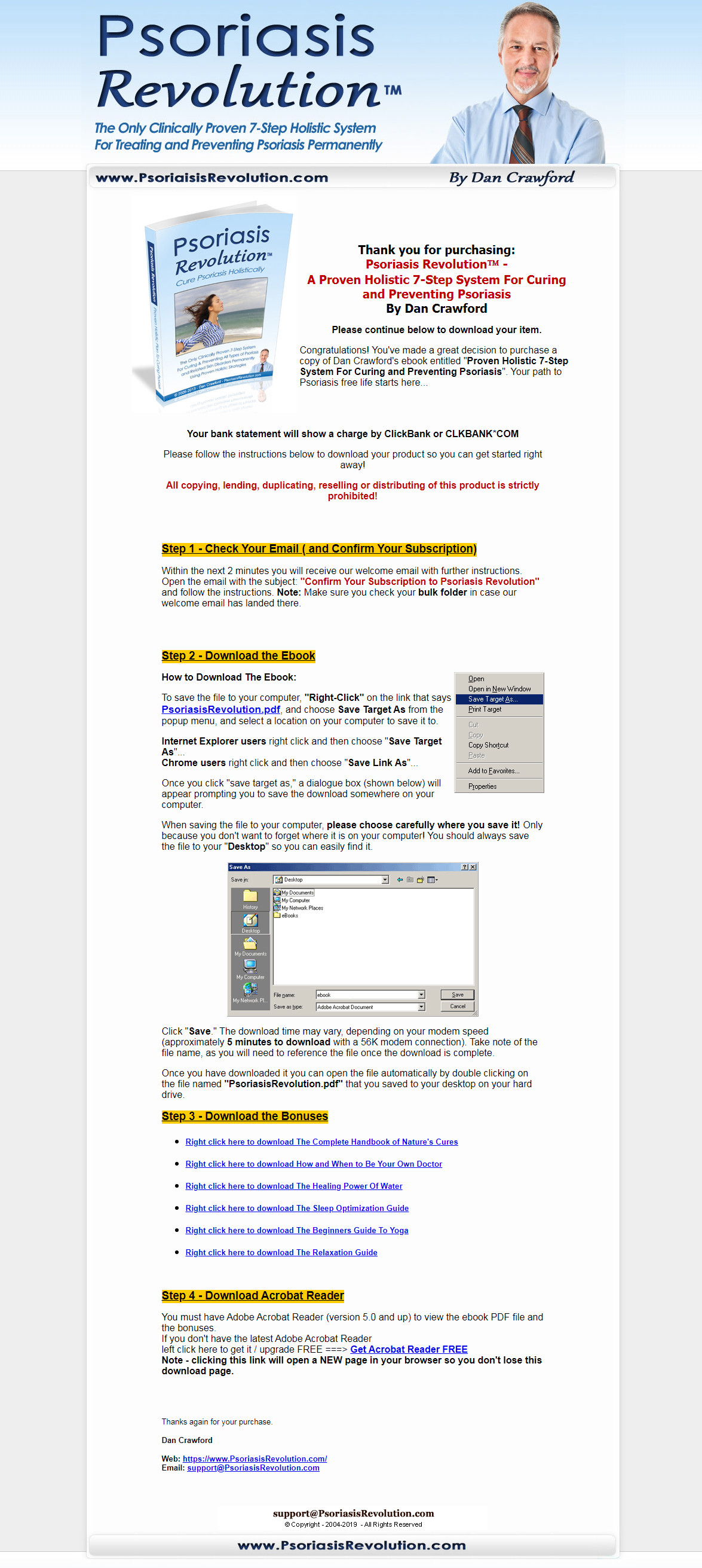 But don’t be mistaken, Psoriasis Revolution contains much more than the 7-step holistic system. Though, that is certainly the meat of the program as that’s where you learn the comprehensive guide for permanently ending psoriasis. However, throughout the entire system, there are a bunch of other action plans you can do for quick relief, relief of specific symptoms, or to focus more on one area that you feel is contributing to your condition. For example, in addition to the 7-step system, you also receive a 3-day juice cleanse, a one week program for getting rid of parasites, an instant relief plan, and many more. All of these are found within the 7-steps, as well as much more such as valuable information about psoriasis, how to diagnose it, how to tell the severity of it, the side effects of conventional treatment, food lists, diet recommendations, supplement guidelines, you name it.